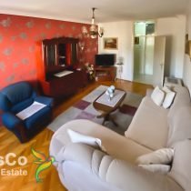 The apartment is very spacious, as evidenced by its square footage, two bedrooms with a large living room that has access to the balcony. Both bedrooms have double beds and large wardrobes. The hallway is also very functional with a large wardrobe. The dining room and kitchen are separated from the living room, and the kitchen is equipped with all the necessary appliances.