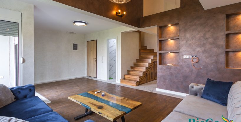 The apartment is two-bedroom, duplex, with a total area of 105m2. Of that, the lower part of the apartment has 45m2 and the upper part has 60m2 and that part is not legalized. In the lower part there is a large living room, with a large balcony door, and a part intended for the dining room. The kitchen is separated by a partition wall, it is very comfortable and spacious. The upper part of the apartment is reached by stairs that are made of walnut wood, and apart from being of high quality, their color and appearance fit perfectly into the environment. In the upper part there is a hallway where you can place a small closet, two bedrooms and a bathroom with a shower. Both bedrooms are large, one is entirely under a sloped ceiling, while the other is in two parts, one of which has a flat ceiling and the other under a slope, and that part of the room is ideal as a wardrobe or working part of a children’s room.
