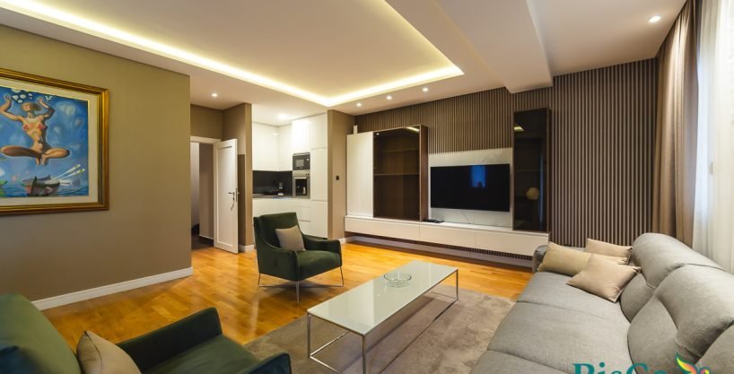 The apartment is located in Serdara Jola Piletić Street in the Velimirović Building. A very good location where everything is within easy reach and the building itself is built to a high standard and has a reception desk. A peaceful environment and a view of Morača will make your stay in this apartment full of pleasure. The building is tucked away in that environment, which makes the apartment even more irresistible