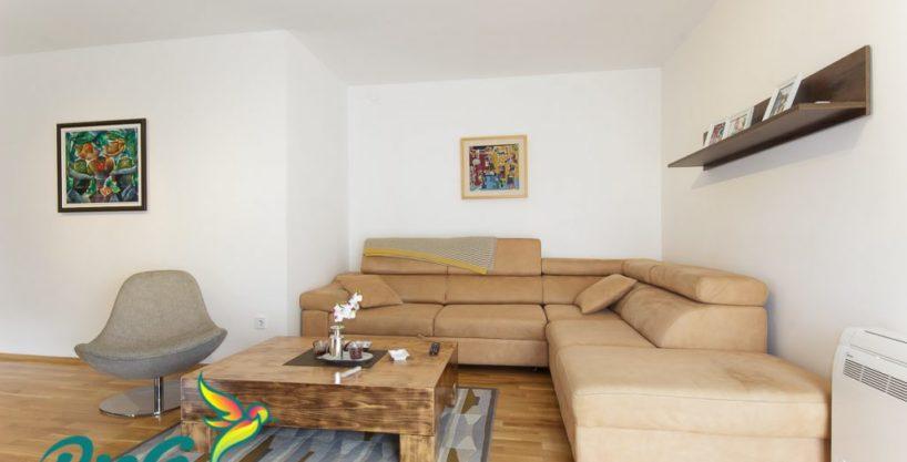 The apartment is located on the ground floor of the house, which is newly built. It is located in the village of Gornja Gorica near the main road Podgorica-Niksic. The road leading to the house is also very wide and spacious. There’s also a bus stop nearby. This part of town is very quiet and with lots of greenery. For orientation, it is located one kilometer from the large Delta shopping mall.