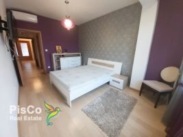 The apartment is two-room, 90m2, very spacious and comfortable. The living room is comfortable, nicely lit with two large windows, has a TV and air conditioning and nice decorative details. It includes a dining area with a table and chairs. The kitchen is separated by a smaller bar, in light tones, and with all the necessary elements and appliances. One bedroom has a large double bed and a TV set, while the other is equipped with a smaller bed and a closet, and from this room there is an exit to the terrace with a view of Gorica. The apartment has a bathroom with a shower cabin and a washing machine, as well as a smaller toilet. The apartment also has a storage room and a wardrobe.