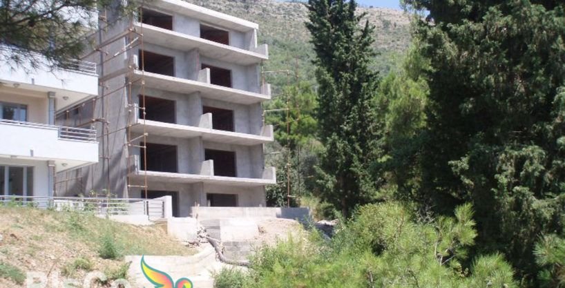 There are two apartments on each floor, except for the fifth floor, there is one apartment. Eight apartments consist of: large living room with kitchen of about 27m2, which opens onto a large south terrace of about 10m2, bathroom of about 5.5m2, bedrooms of about 11.5m2, which has a separate side terrace of about 5m2 and a hallway of about 7.5m2. Apartment of about 125m2, on the fifth floor consists of: hallway of 6.45m2, room of 8.72m2, with a terrace of 3.13m2, toilet 2.91m2, second bedroom 8.72m2, with a terrace of 4.26m2, living room of 7.22m2, bathroom of 7.21m2, third bedroom of 18.89m2, with access to a terrace of 10m2, kitchen of 5.33m2, living room of 32.06m2, with a terrace of 10m2 .All kitchens and bathrooms have windows. Apartments on the first floor S1, except for terraces as in other apartments, will have a separate yard to the south and side. In front of the building is a pine forest that blocks a number of apartments direct sea view.