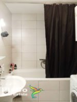 It is a 25m2 studio apartment that is fully equipped. The space is completed with a two-seater three-seater and an armchair as well as a chest of drawers with a TV. There is also a small dining room and a kitchen that has all the necessary elements and appliances. There are a lot of built-in closets in the hallway. The bathroom has a bathtub and a washing machine. The studio opens onto a terrace and is air-conditioned. The building has an elevator and an intercom.