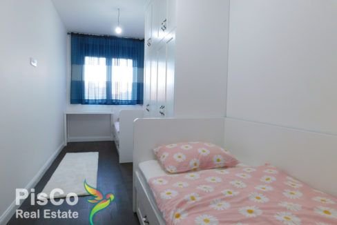 Stan je luksuzno opremljen, vidi se na prvi pogled da je vođeno računa o svakom kutku ovoga stana. Ugradni plakari su od medijapana, kao i kuhinja koja je opremljena svim potrebnim kuhinjskim aparatima. U dnevnoj sobi je velika garnitura i TV. U spavaćim sobma se nalazi bračni krevet i veliki plakar u jednoj i dva singl dječija kreveta sa plakarom u drugoj.