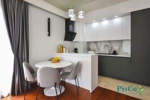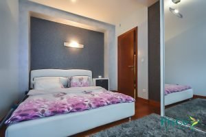 Već sa ulaznih vrata stiče se osjećaj o kvalitetu stana. Od unutrašnje i spoljašnje bravarije, parketa, pločica, podova… sve je radjeno od materijala visokog kvaliteta. Opremljen je veoma modernim i kvalitetnim namještajem. Iz velike dnevne sobe u čijem nastavku su i trpezarija i kuhinja ima izlaz na balkon na kome ćete uživati u lijepom pogledu. Stan posjeduje dvije spavaće sobe od kojih je jedna opremljena bračnim krevetom i ormanom a druga je osmišljena kao dječija soba.