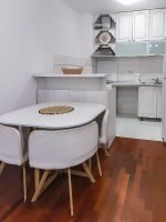 Stan je potpuno opremljen i odmah useljiv. Dnevni boravak je svijetao, sa ugaonom garniturom, TV i klima uređajem, lijepim dekorativnim detaljima, i ima izlaz na balkon. U sklopu je trpezarisjki dio sa stolom i stolicama, a u nastavku kuhinja. Ona je svijetlih tonova, funkcionalna, sa svim neophodnim uređajima. Spavaća soba ima bračni krevet i orman. Kupatilo je sa tuš kabinom i veš mašinom.