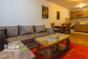 Stan je namješten, i odmah useljiv. Dnevni boravak ima ugaonu garnituru, TV i klima uređaj, i izlaz na balkon. U nastavku su trpezarija i kuhinja, koja je opremljena svim neophodnim uređajima. Spavaća soba ima veliki bračni krevet i orman. Kupatilo je sa tuš kabinom i veš mašinom. U hodniku je ugradni plakar. Na terasi su postavljene roletne.