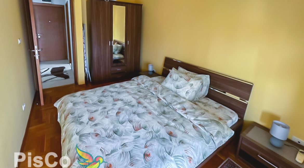 Stan je veoma prostran i komplet opremljen namještajem, lijepo ukloplenim dekorativnim detaljima i rasvjetom. Dnevni boravak posjeduje garnituru, TV i klima uređaj, i ima izlaz na balkon. U nastavku je kuhinja koja je odvojena manjim šankom koji je ujedno i mjesto za obroke. Kuhinja je svijetlih tonova, sa svim neophodnim aparatima. Spavaća soba ima veliki bračni krevet i orman, kao i TV uređaj. Ima izlaz na balkon. Kupatilo je lijepo uređeno, sa finim sanitarijama, kadom i veš mašinom.