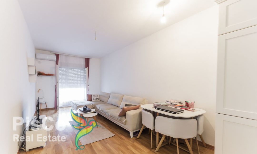 Stan je lijepo opremljen i dosta osvetljen, poseduje veliku dnevnu sobu koja ima prelepu garnituru sa smart televizorom. Imamo i trpezarijski sto sa stolicam kao i kuhinju koja ima apsolutno sve kuhinjske elemente i manje uređaje. Dnevna soba ima izlaz na balkon osim što je u ovom slučaju balkon pretvoren u spavaću sobu, tako da ste dobili jednosoban stan. Kupatilo je jednostavno opremljeno sa svim osnovnim stvarima.