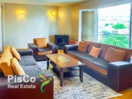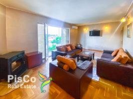 Stan se nalazi u sklopu kuće, tačnije na drugom spratu. Dnevni boravak je veliki i lijepo osvijetljen jer ima velike staklene površine. Posjeduje trosjed, dvosjed i fotelju. Kuhinja i trpezarija su potpuno odvojene u zasebnoj prostoriji koja je takođe velika, i ima velike prozore. Kuhinja je opremljena svim neophodnim uređajima. Jedna spavaća soba ima bračni krevet i orman, dok druga posjeduje dva singl kreveta i orman. Obe sobe su prostrane, sa dosta svijetlosti. Stan ima i 3 terase.