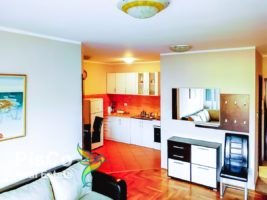 Stan je lijepo uređen, prostran je i komforan. Dnevni boravak je osvijetljen velikim balkonskim vratima i prozorima, ima garnituru, TV i klima uređaj. U nastavku je trpezarijski dio sa stolom i stolicama, i kuhinja koja je takođe prostrana i funkcionalna. Spavaća soba ima veliki bračni krevet i orman.