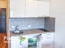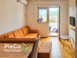 Garsonjera je opremljena novim, modernim namještajem, ima izlaz na balkon i zbog toga je lijepo osvijetljena. Posjeduje lijepu garnituru svijetlih tonova, TV i klima uređaj, kao trpezarijski sto i stolice. Kuhinja je takođe opremljena novim elementima i svim neophodnim uređajima. Kupatilo ima veš mašinu. Sa balkona se pruža pogled na zelenilo i more.
