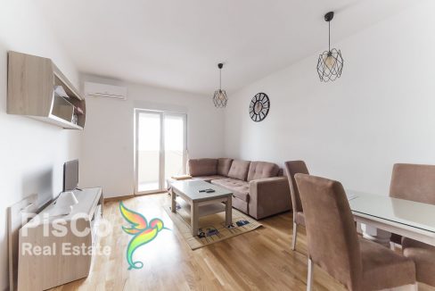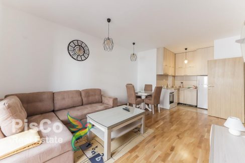 Stan je lijepo opremljen i dosta osvetljen, poseduje veliku dnevnu sobu koja ima prelepu garnituru sa smart televizorom. Imamo i trpezarijski sto sa stolicam kao i kuhinju koja ima apsolutno sve kuhinjske elemente i manje uređaje. Dnevna soba ima izlaz na prelepi balkon, stan ima takođe i spavaću sobu koja je zaista prostrana i ima veliki bračni krevet i orman. Kupatilo je jednostavno opremljeno sa svim osnovnim stvarima.