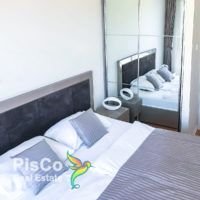 Stan je prelijepo opremljen, a lijepom ambijentu dodatno doprinosi velike staklene površine koje osvijetljavaju ceo stan. Dnevni boravak posjeduje modernu garnituru, TV i klima uređaj. Tu je i trpezarijski dio a u nastavku kuhinja lijepog dizajna i sa svim neophodnim ugradnim elementima. Spavaća soba ima veliki bračni krevet i orman. Kupatilo je takože lijepo opremljeno. Sa balkona se pruža prelijep pogled na more.