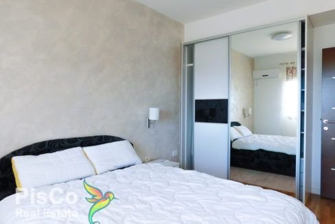 Stan je vrlo moderno namješten i vrlo lijepo strukturiran. Već sa samog ulaza vidi se visok kvalitet i luksuz. U hodniku koji vodi sa ulaza do dnevne sobe ugrađen je veliki plakar. Dnevna soba je uređena lijepo i sa ukusom a u njenom produžetku su trpezarija i kuhinja opremljena najmodernijim kuhinjskim aparatima. Dvije spavaće sobe su odvojene hodnikom i u svakoj se nalazi bračni krevet i plakar. Postoje dva kupatila od kojih je u jednom postavljena veš mašina a u drugom se nalazi tuš kabina. Stan je u potpunosti klimatizivam i posjeduje multi-split sistem.