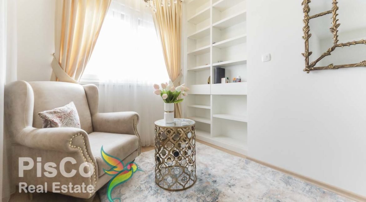 Stan je luksuzno opremljen, poseduje ogroman hodnik koji Vas sprovodi direktno do ostalih prostorija u stanu. Stan ima gostinjski wc pri ulaznim vratima od stana, tu su dve spavaće sobe ko je imaju plazma televizor i obe imaju veliki bračni krevet. Jedna od tih soba je takozvana master bedroom koja ima i svoje kupatilo, dok ove dvije imaju zajednicko kupatilo. Izuzetno bitna stvar kod ovog stana je to što je dnevni boravak izdvojen od trpezarije, a i kuhinja je zasebna. Stan poseduje i kutak koji je određen za odmor i uživanje. Svaka prostorija je klimatizovana i opremljena odličnim inverter klimama.