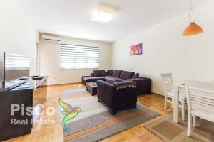 Ovaj jednosoban stan od 51m2 jako je lijepo uređen i vrlo je prostran i komforan što u prilog govori i sama kvadratura. Prostrana dnevna soba upotpunjena ugaonom garniturom i TV-om, povezana je sa trpezarijom i kuhinjom koja ima sve neophodne elemente i uređaje. U spavaćoj sobi su veliki garderober i francuski krevet. Kupatilo je veliko, ima tuš kabinu i veš mašinu. Stan je klimatizovan i izlazi na jednu terasu koja posjeduje stol i stolice za uživanje na njoj.