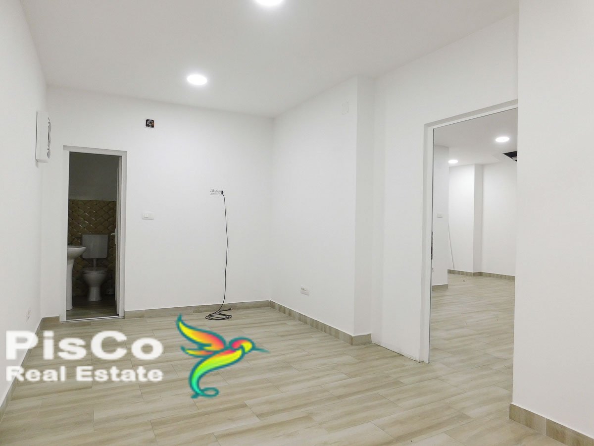 Prostor je veličine 120m2, klimatizovan, sa lijepo organizovanim rasporedom prostorija unutar njega. Sa ulaznih vrata se ulazi u veliku prostoriju u čijem su produžetku i dvije manje. Stepenice pri ulaznim vratima vas vode na gornji nivo gdje je nešto niži plafon a čitavom dužinom zida su prozori pa je prostorija izvanredno osvijetljena.