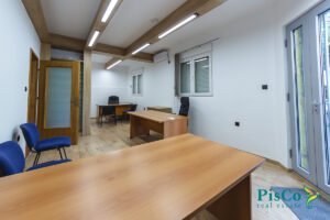 Napravljen od jednosobnog stana i nalazi u prizemlju stambene zgrade, ima prilaz zgradi iz dvije ulice i dosta parking mjesta što je velika pogodnost. Opremljen je kancelarijskim namještajem i postoji prostor za dodatnim opremanjem ili uklanjanje nekih stvari, a takodje se jedan dio može prilagoditi i za stambeni prostor.