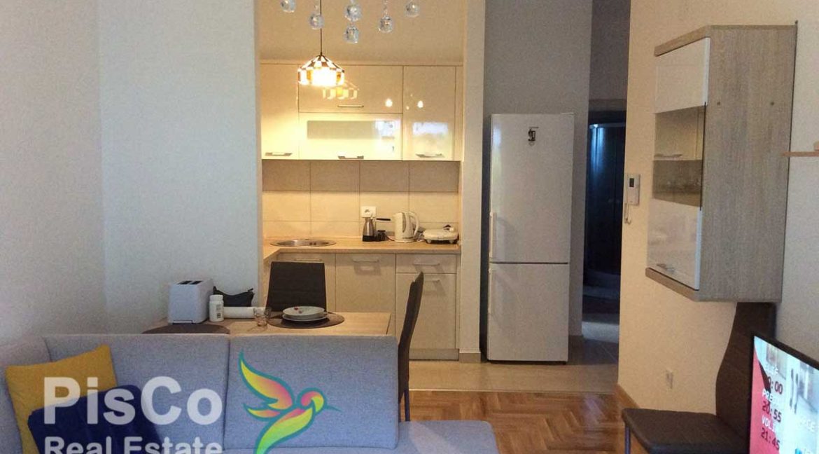 Stan je potpuno nov i opremljen je najnovijim stvarima. Struktura stana je sledeća: dnevna soba sa izlazom na balkon, kuhinja sa svim kuhinjskim elementima, hodnik, kupatilo i jedna spavaća soba koja ima veliki bračni krevet i orman.