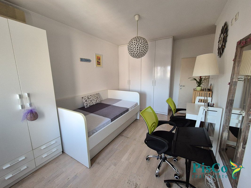 Ovaj dvosoban stan od 60m2 je jako lijepo sređen. Potpuno je renoviran i opremljen novim namještajem. Dnevni boravak je prostran, upotpunjen je sa garniturom kao i komodom sa TV-om. Kuhinja sa trpezariskim stolom je u nastavku. Kuhinja je u potpunosti opremljena, ima sve neophodne kuhinjske elemente i uređaje. Jedna spavaća soba je prozračna i ima francuski ležaj dok je u drugoj singl krevet koji se otvara. Kupatilo je opremljeno sa tuš kabinom i mašinama za pranje i sušenje veša.