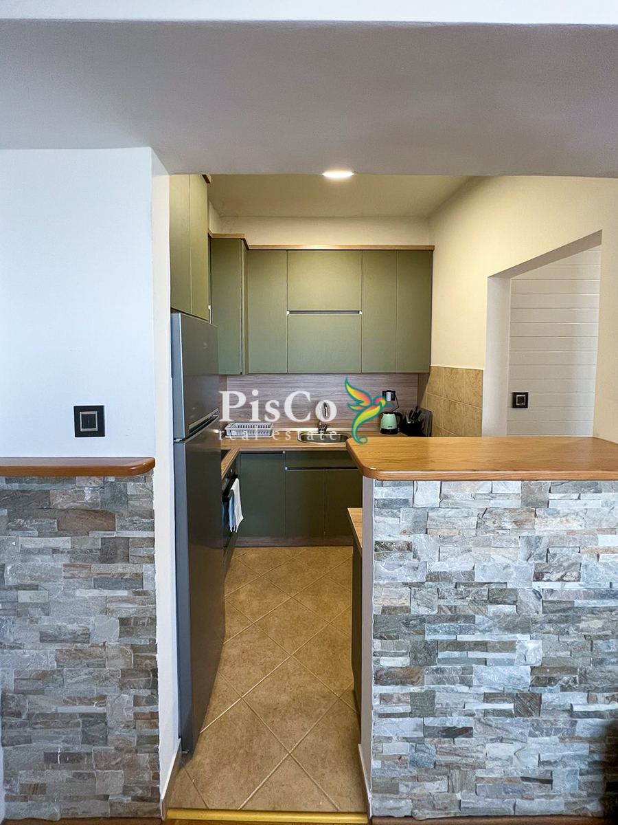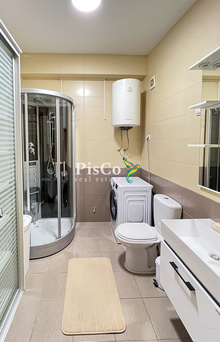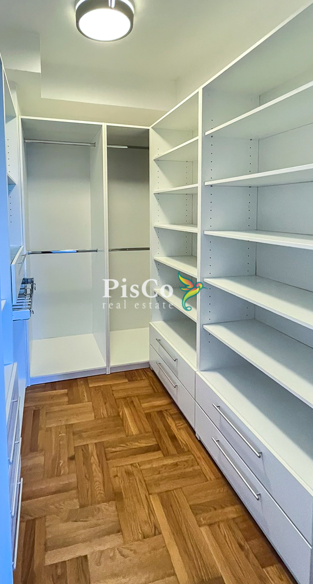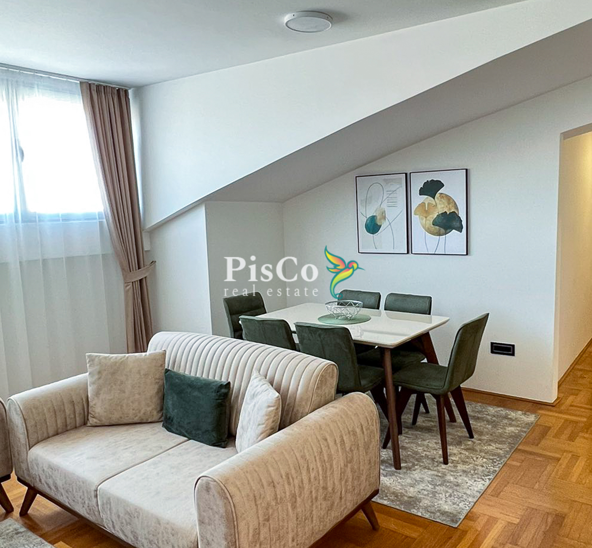 Stan je svijetao, komforan i funkcionalno organizovan. Dnevni boravak je otvoren i povezan sa trpezarijom i kuhinjom, što prostoru daje dodatnu prostranost. Master spavaća soba ima veliki walk-