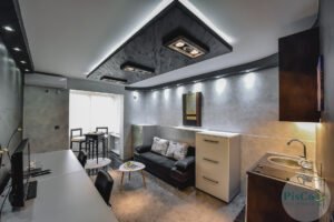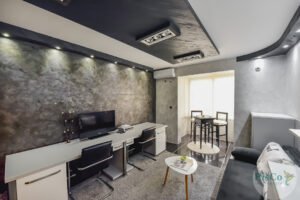 Garsonjera je površine 25m2, potpuno je opremljena i veoma udobna za život. Posjeduje dvosjed na izvlačenje, klima uređaj, veliki radni sto. Kuhinja posjeduje sve neophodne uređaje. Trpezarijski dio smješten je pored prozora, tako da je veoma prijatan kutak za jutarnju kafu. Kupatilo je sa tuš kabinom i veš mašinom. Garsonjera nema balkon. Veoma je lijepo sređena, sa finom rasvjetom i namještrajem, i lijepim dekorativnim detaljima.