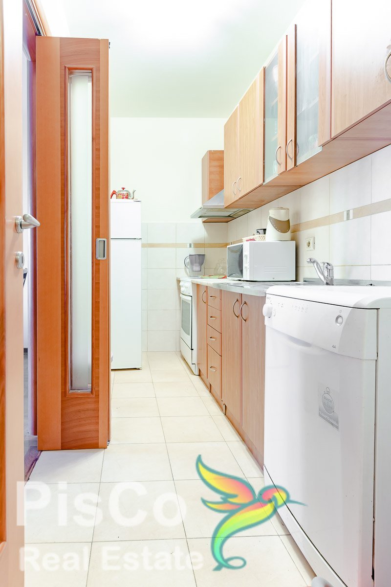 Stan je opremljen kvalitetnim namještajem, veoma pristojan i komforan. Ima oko 55m2. Velika dnevna soba sa izlazom na balkon, kuhinja je takodje velika i prostrana i dobro opremljena uredjajima. Spavaća soba je sa velikim bračnim krevetom a tu je i prostran plakar.