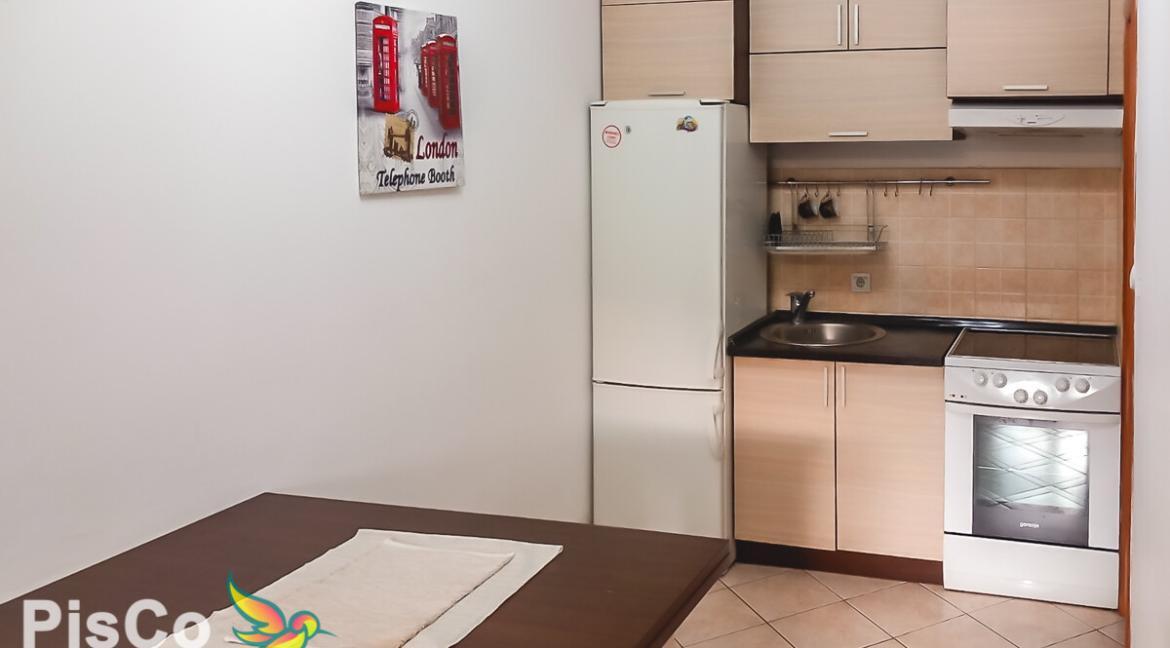 Stan je manji jednosoban, pogodan za jednu osobu ili par. Potpuno je namješten, i odmah useljiv. Dnevni boravak ima garnituru, TV i klima uređaj. U nastavku je trpezarija, kao i kuhinja. Spavaća soba je sa bračnim krevetom, i ima izlaz na balkon. Kupatilo posjeduje kadu i veš mašinu.