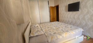 Enterijer: Stan od 109 m² ima funkcionalan raspored. Sastoji se od prostranog hodnika, ostave, toaleta, kuhinje, trpezarije i prostranog dnevnog boravka s izlazom na terasu. Tu je i dodatni hodnik koji vodi ka tri spavaće sobe, od kojih dvije imaju terasu (jedna je zatvorena), te kupatilo. Stan je kompletno opremljen, uključujući centralno grijanje i klima uređaje u dnevnom