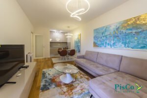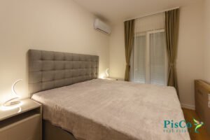 Stan je dvosoban i ima 69m2, vrlo je komforan i prijatan za boravak. Opremljen je novim stvarima vrhunskog kvaliteta, kao i ostalom opremom i tehnikom. Dnevna soba je izuzetno lijepo opremljena i prijatna za svakodnevni boravak, na nju se nadovezuje kuhinja sa svom potrebnom opremom i elementima, a tu je i trpezarijski stol. Prostor jedne spavaće sobe je ispunjen bračnim krevetom i velikim ormanom dok će druga soba biti prazna. U stanu imaju kupatilo i toalet.