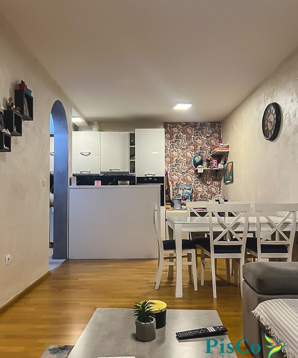 Stan je dvosoban, kompletno namješten svim potrebnim uređajima i vrlo kvalitetno renoviran. Stan je opremljen, i odmah useljiv. Dnevni boravak ima ugaonu garnituru, TV i klima uređaj. U nastavku je trpezarijski sto sa stolicama. Kuhinja je potpuno je nova, sa novim uređajima. Jedna spavaća soba je sa bračnim krevetom dok je druga koncipirana kao dječija soba.