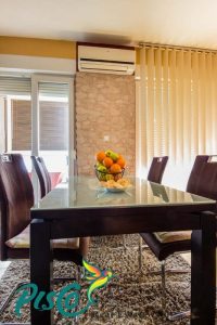 Kao što smo već istakli, stan je potpuno opremljen, kako namještajem tako i tehnikom. Posjeduje klimu, zidne radijatore 5 kom interfon, kao i moderne internet i tv mreže.