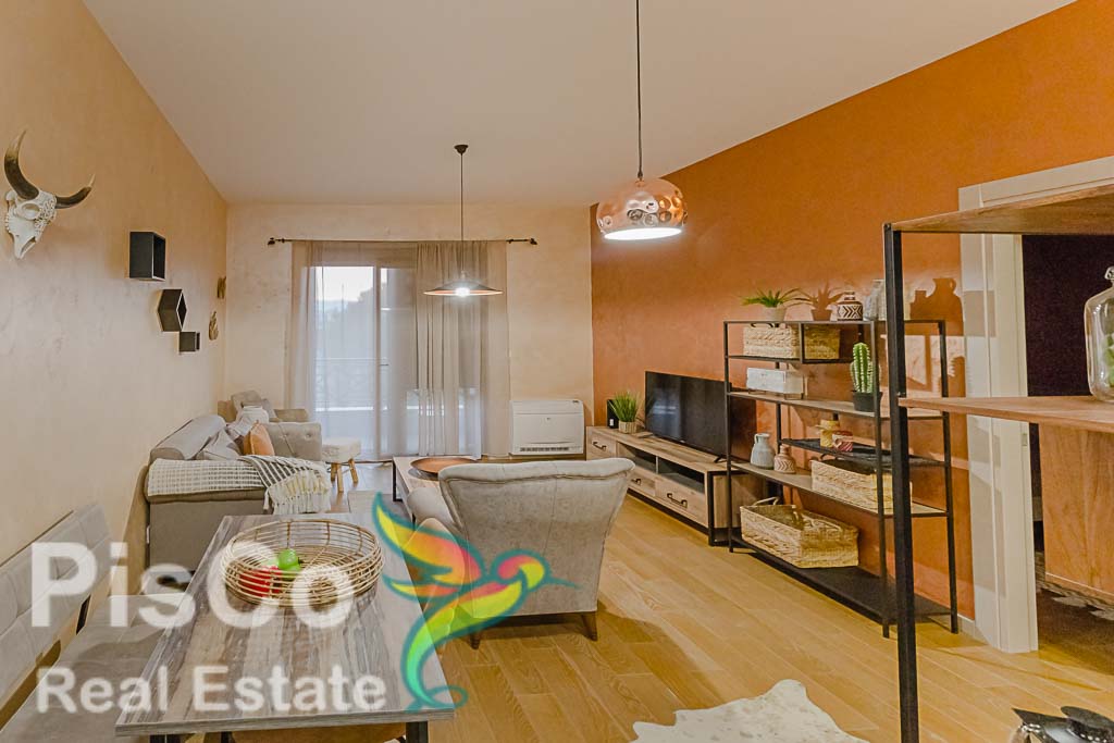 Stan je dizajniran da pruži intimu i mir sa diskretnim detaljima koji upotpunjuju prostor. Osnovni cilj kod uredjenja ovog prostora je udobnost i privatnost, pa stoga i od namještaja koji se nalazi u stanu očekujte da bude udoban, komforan ali u isto vrijeme i funkcionalan. Na zidovima su uradjene zidne tehnike, što zbog dekora ali i lakšeg održavanja. Multi split sistem grijanja i hladjenja će vam omogućiti da se osjećate veoma prijatno i u ljetnjim i u zimskim mjesecima.