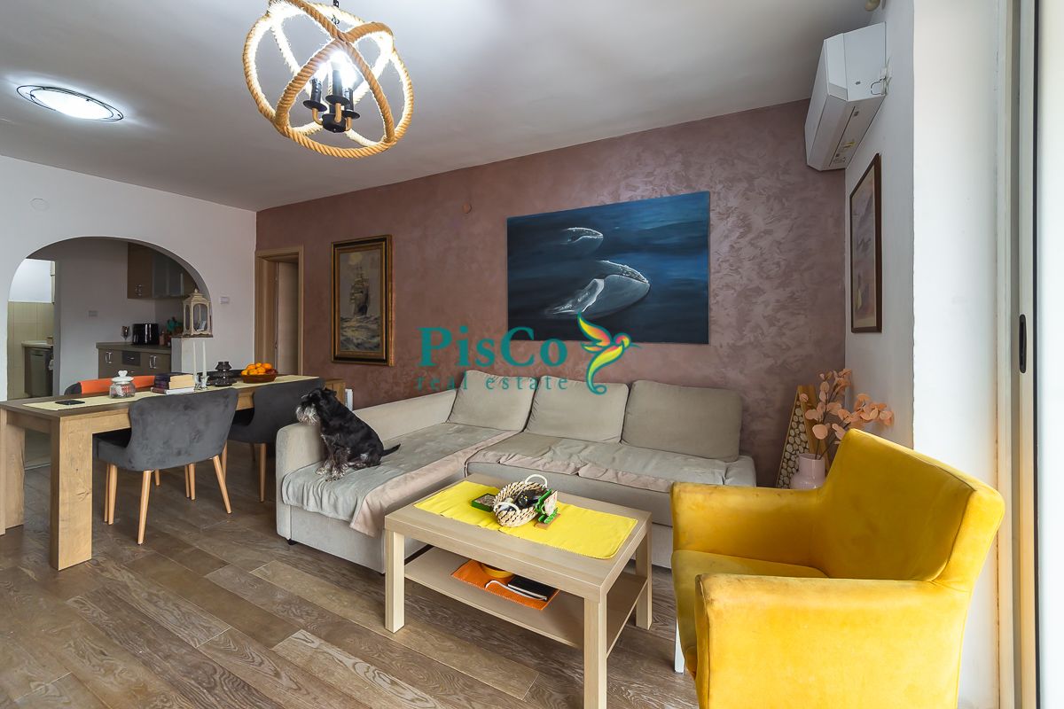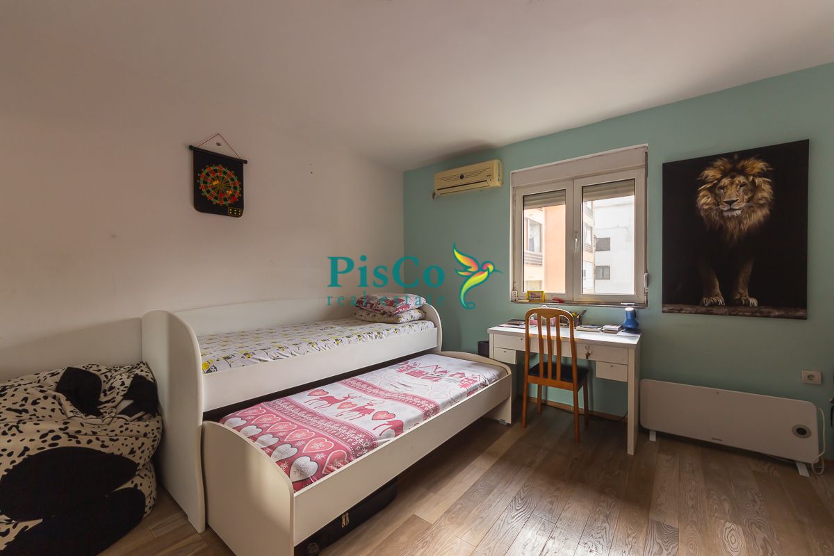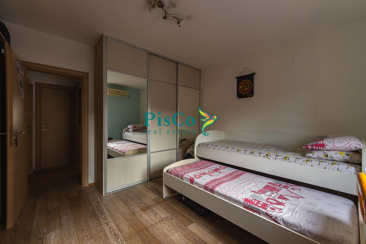 Nalazi se u zgradi Lepa Kata, na 5. spratu zgrade koja ima lift i koja se redovno održava. Prodaje se namješten. Renoviran je, postavljene su nove cijevi, parket, loksirana vrata. Stan je sunčan, topao i prozračan. U blizini su škole, vrtić, pijaca i centar grada. U okolini zgrade je parking sa dovoljno parking mjesta za stanare.