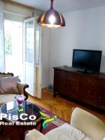 Ovaj jednosoban stan od 40m2 se nalazi u zgradi koja ima interfon i lift. Dnevna soba koja ima lijep trosjed, dvosjed i fotelju kao i komodu sa TV-om. Dnevna soba je od trpezarije i kuhinje odvojena harmonika vratima. Spavaća soba ima dva kreveta samca, garderober. Kupatilo ima kadu i veš mašinu. U hodniku su veliki ugradni plakari. Stan izlazi na jednu terasu i klimazitovan je, a ispred zgrade ima dovoljno parking mjesta.