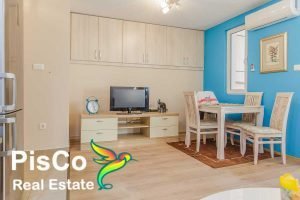 Stan je klasičan jednosoban, sa spavaćom sobom, hodnikom, velika dnevna soba gdje je dio rezervisan za trpezariju i kuhinju, a tu je i lijep balkon. Napomenućemo da je stan komletno renoviran i to od poda do plafona. Mi nijesmo našli ni jednu zamjerku na uredjenje. Odradjeni su čak i plafoni od rigipsa, dodatni plakari i ormari, a vanjska bravarija je kompletno zamijenjena. Takodje su stavljene ukrasne ali i sigurnosne rešetke na spoljne prozore, jer je stan visoko prizemlje. I taj prostor na balkonu je iskorišten da bi se dodalo mjesta za ugradne elemente.