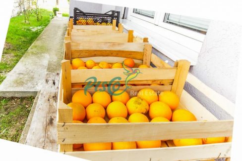 Plac na kojem se kuća nalazi je 546 m2, a objekat je 220m2, prizemlje i sprat sa mediteranskim krovom koji ima veoma blagi pad. Pored se nalazi i pomoćni objekat od 12m2 a kompletan plac je ogradjen zidanom betonskom ogradom, koja daje dodatnu intimu ovom prostoru. Kuća je skoro nova a tako i izgleda. Spolja nije stavljena demit fasada, ali jeste bavalit pa kuća i estetski izgleda jako lijepo. Terase su osigurane kovanom ogradom kao i stepenice koje vode na drugi sprat.Dvorište je takodje održano a zasadjene su i kulture voćaka, pomorandže, kivi, šipak, jabuka, smokva, trešnje, iglice, šljiva… Vani postoji moderna rasvjeta, a spoljašnja bravarija je aluminijska.